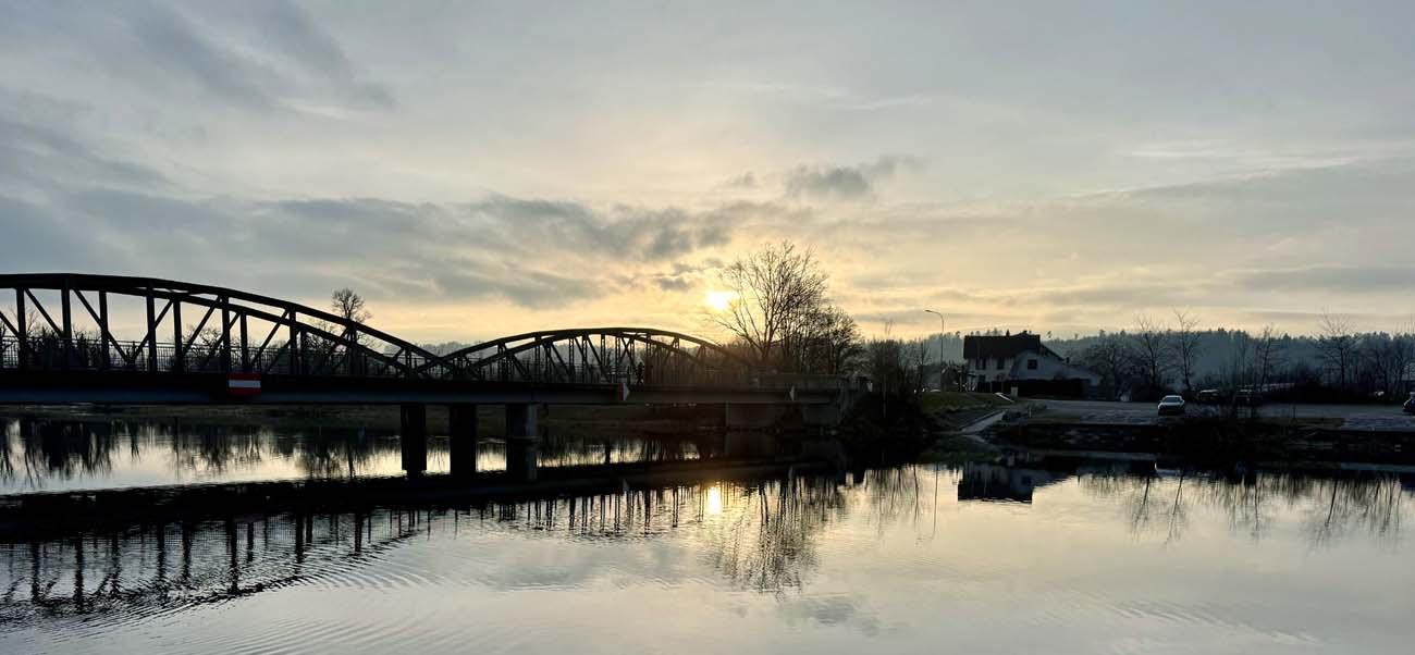 2: Winterlicher Sonnenuntergang an der Reuss in Rottenschwil, Freiamt.