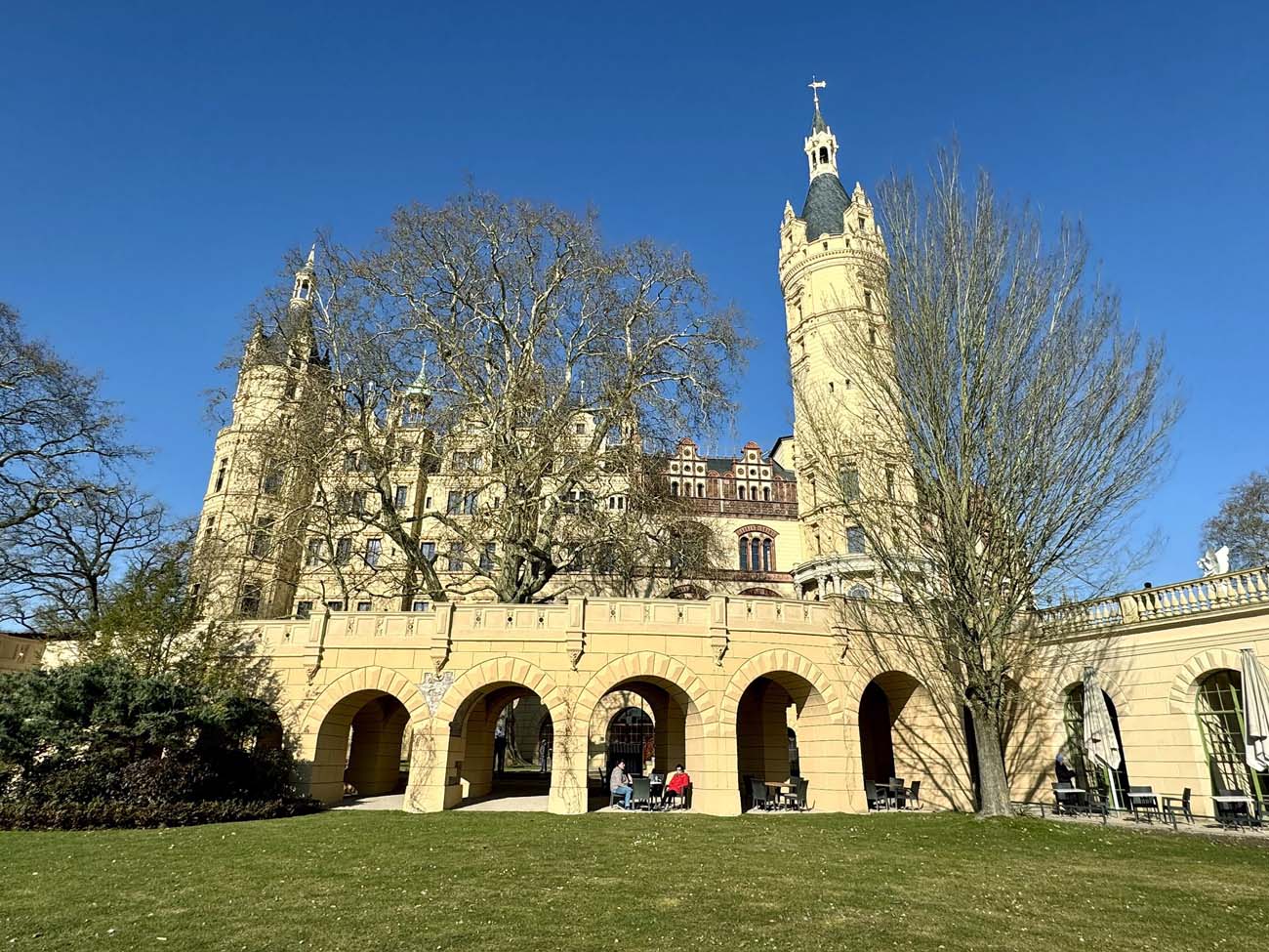 auf das Staatliche Museum (rechts, teiw. eingerüstet) und das Mecklenburgische