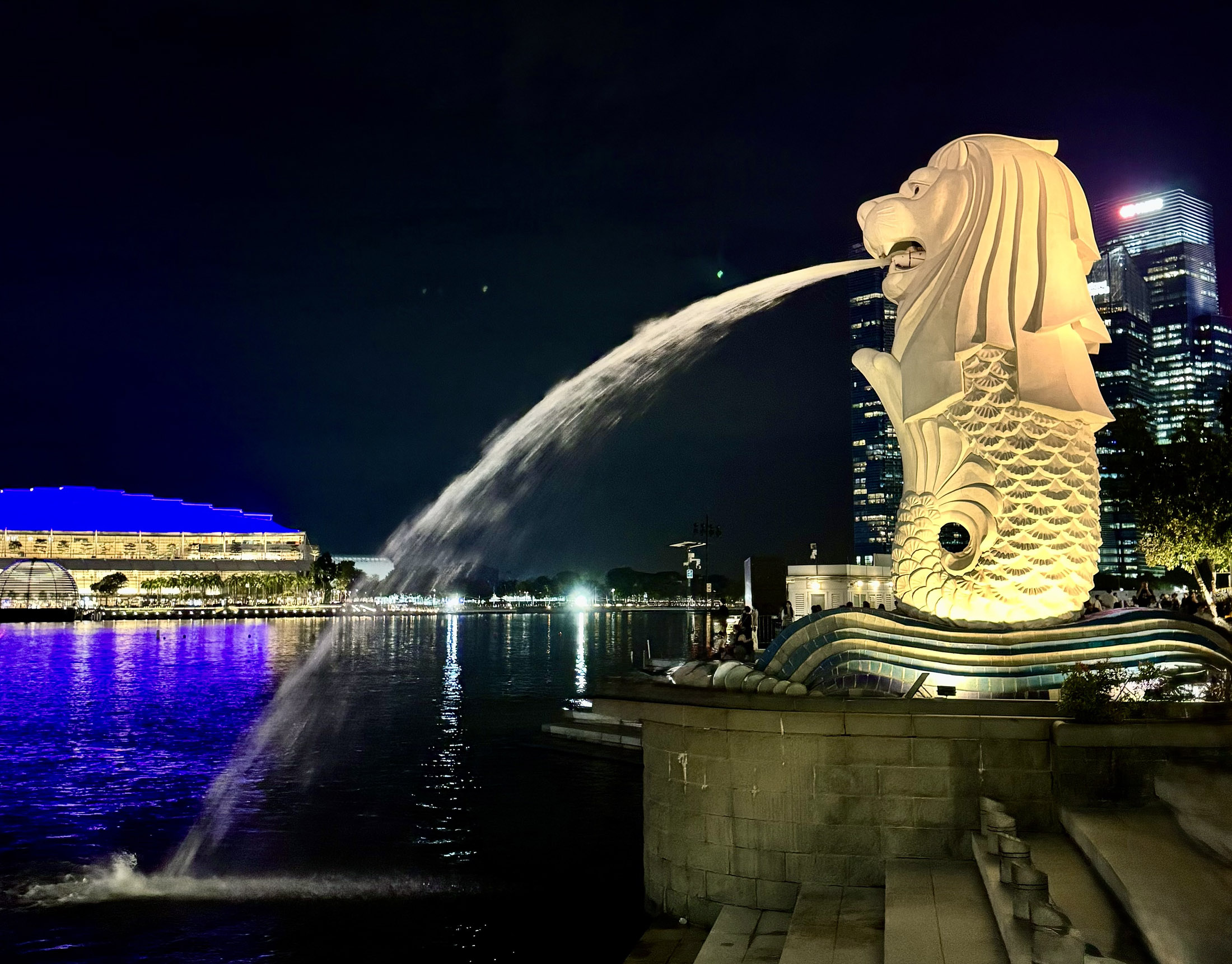 "Wappentier-Symbol" dieses Staates: der Merlion. Ein Fabeltier halb